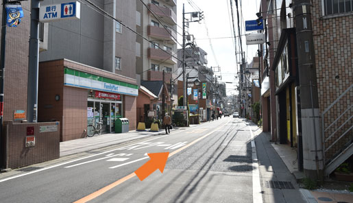 そのまま左手にファミリーマートを通り過ぎて直進してください。